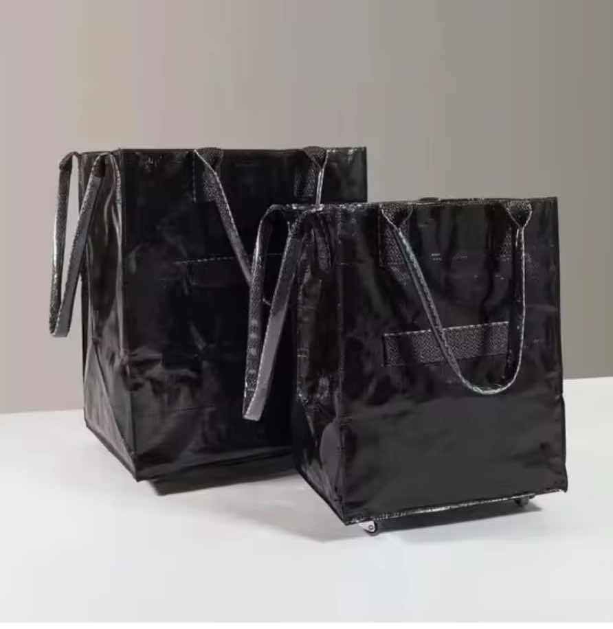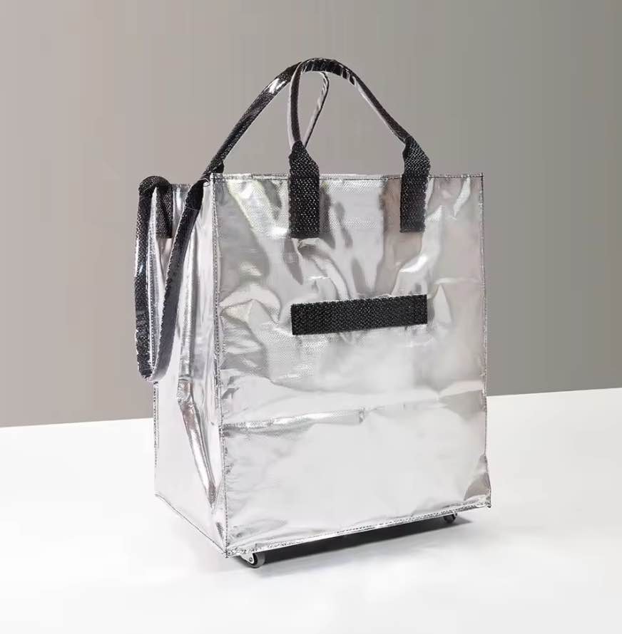 Feature: Transformable from handbag to shopping bag, foldable hidden wheels as handbag.