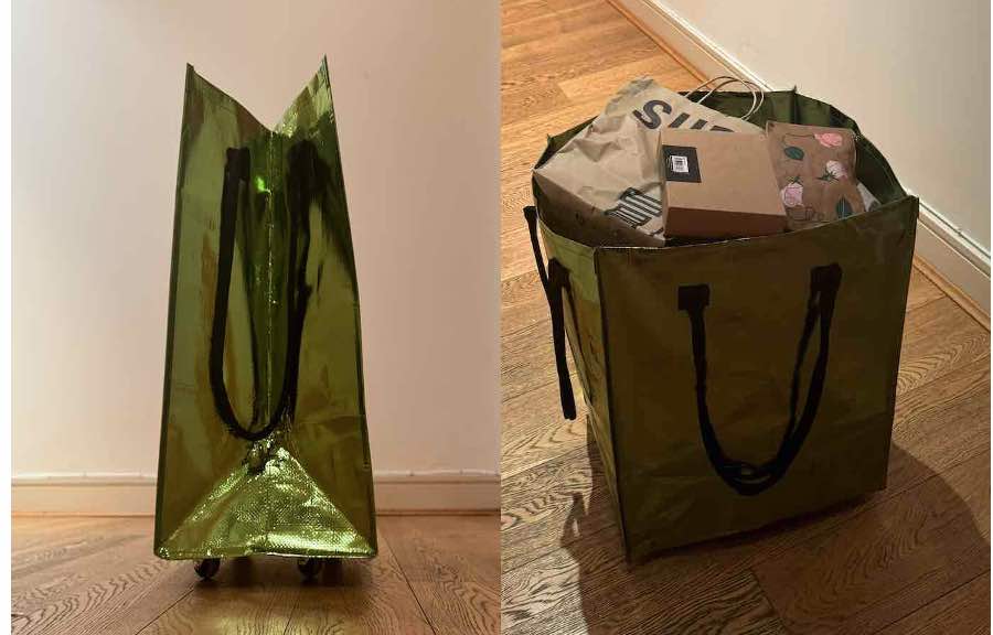 Model : Pull along large shopping bag with wheels, foldable to handbag carry on