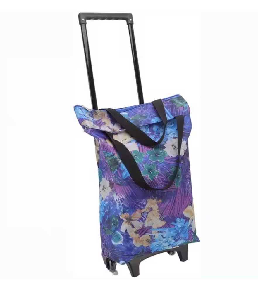 Feature: Water proof, transformable handbag to shopping bag trolley, trolley handle, wheels
